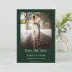 This Emerald Green Minimalist Modern Photo Save the Date Announcement comes with a simple text design and placement for your photo. Add your favourite photo and wedding date to customize. Additional colours available with this design.
