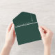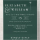 This all-in-one minimalist wedding invitation features modern typography on an emerald green background. The invitation includes a perforated RSVP card with your wedding website QR code. Designed by Thisisnotme©