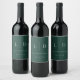 Emerald Green Minimalist Monogram Wedding Wine Label