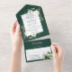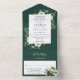 Emerald Green Modern Botanical Floral Wedding All In One Invitation