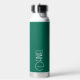 Trendy vacuum insulated water bottle that features personalized name in white, modern typography on an emerald green colour background. Personalize bottle by editing name and replacing name with your own as desired. Perfect for a birthday gift, wedding groomsman gift, etc. Select your water bottle style. Select your water bottle style.