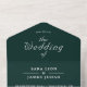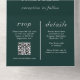 Cette élégante faire-part de mariage tout-en-un vert émeraude présente un minimum de typographie de script et de serif. La section RSVP et détails sont inclus. Customisez ce faire-part de mariage avec les noms, les détails du jour de mariage, et plus encore.