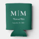 Wedding Can Cooler. Monogram. New Last Name. Couple Names & Date. Emerald Green.