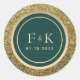 Simple, modern, elegant, glitter gold and emerald green monogram wedding stickers for envelope seals, with custom initials and date.
