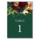 Emerald Green Moody Floral Burgundy Wedding Table Number