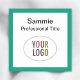 Personalize our professional square name badge with your company logo, employee name, professional job title, or other custom text. Available with a safety pin back or a magnetic back fastener (do not use with pacemakers). Designed with an emerald green border and other colours. All colours are customizable. The dimensions are 2 inch x 2 inch. No minimum order quantity and no setup fee.