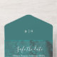 This all in one wedding safe the date invitation card is special. You get your changeable invitation card and the RSVP card all in one. The RSVP card helps you to plan with the number of guests. You can customize the simple and minimal wedding safe the date card with your monogram, intro, names, occasion, date, adress, rsvp and other background colours and fonts to your preferations. You can even change the image or put a photo on it. It shows a harmonious blends of emerald green tones and it has fitting white typography. The design itself shows a coastal ocean marble design. It is a changeable photo or image design. You can elegant seal and send this trifolded budget wedding invitation. Send the tear off RSVP Postcard back to the sender. Make this special design yours and feel this personalized design for your future wedding. Hobinishop