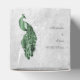 Personalize a unique wedding favour box for guests with this Emerald Green Peacock Wedding Favour Box. Favour box design features an elegant peacock against delicate foliage and grunge background. Personalize with the groom and bride's names along with the wedding date. Additional wedding stationery available with this design as well.