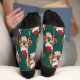 These cute custom emerald green pet photo Christmas socks feature red and white Santa hats on your pet's head and your own dog, cat, or other fur baby photo in an offset pattern, and are the perfect socks to feature your pets during the holiday season! This is a great gift for the pet lover or sock lover as a Christmas stocking stuffer. Background colour is also customizable.