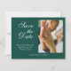 Annoncez votre grand jour avec cet élégant enregistrer la date avec un riche arrière - plan vert émeraude. L'avant comprend un endroit spécial pour votre photo préférée, ajoutant une touche personnelle au design formel. Sur le dos, vos initiales sont affichées avec élégance, associant le look sophistiqué. Parfait pour donner le ton d'une célébration mariage classe et mémorable.