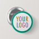 Personalize our high quality round pin back button with your company or school logo. Pin back buttons have a long history as an effective promotional tool and can become collectable souvenirs. The round button is available in 5 sizes: 1.25 inch, 2.25 inch, 3 inch, 4 inch, and 6 inch. This design has a white background with an emerald green border. Also sold in other colours and all colours are customizable. No minimum order quantity and no setup fee. Made in USA.