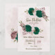 emerald green pink flowers botanical wedding save the date