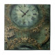 Elevate your decor with this ceramic tile showcasing an old-style steampunk wall clock on a rustic emerald green background. It's a piece of art that adds a touch of timeless elegance to your space. Order yours now!