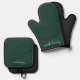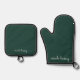 Emerald Green Script | Stylish Monogram Modern Oven Mitt & Pot Holder Set