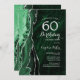 Emerald green and silver agate 60th birthday party invitation. Elegant modern design featuring watercolor agate marble geode background, faux glitter silver and typography script font. Trendy invite card perfect for a stylish women's bday celebration. Printed Zazzle invitations or instant download digital printable template.