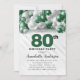 Emerald Green Silver Balloon Glitter 80th Birthday Invitation