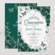 Emerald Green Silver Floral Quinceanera Invitation