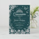Emerald Green Silver Roses Quinceanera Photo Invitation