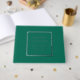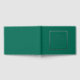 Solid emerald green colour, simple wedding guest book with stylized foil print within a square border that features the bride and groom's name along with wedding date in your choice of colour foil print. Seen here in silver foil print. Select your guest book style.