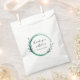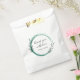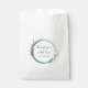 Thank your wedding attendees with this ample size, white favour bag that features a simple, emerald green colour wreath design and stylized script along with the bride and groom's first names printed in black letters. Personalize your favour bag by editing and replacing names.