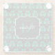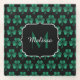 Emerald Green Sparkle Shamrock black Monogram Glass Coaster