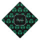 Emerald Green Sparkle Shamrock black Monogram Graduation Cap Topper