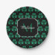 Emerald Green Sparkle Shamrock black Monogram Paper Plate