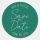Emerald Green Stylized Wedding Save the Date Classic Round Sticker
