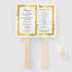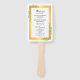 This fan will serves two purposes at your outdoor wedding. This fan features your ceremony program and the backside is a list of your wedding party. The design is a simple gold border accented with emerald green leafy vines.