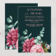 Emerald Green Watercolor Burgundy Flowers Wedding Invitation