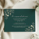 Chic vintage bohemian luxury emerald green hotel accommodation enclosure card with gilded gold flowers and modern calligraphy script. A stylish and elegant way to share important details with your guests.