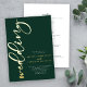 A classy, elegant and minimal designed all in one Wedding Invitation featuring a stylish script font in gold foil. Customize with your details to inform your guests of your special day. Please browse the Minimal Emerald Green Gold Wedding Suite for matching items.