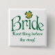 This forest green and white Bride's "Last fling before the ring" button has a gold FAUX glitter and lucky green four leaf clover shamrock on it. It would be perfect for a Bachelorette or stagette party, or a hen's night party. If you need anything changed, please email niteowlstudio@gmail.com.