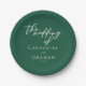 This solid emerald green round wedding plate features classic white script for a couple getting married in a forest or other nature venue. Celebrate your love with this tranquil colour and coordinate this decor with our matching minimalist typography collection.