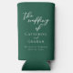Emerald Green White Script Personalized Wedding Seltzer Can Cooler