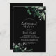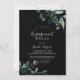 This emerald greenery black engagement party invitation is perfect for a boho engagement event. The elegant yet rustic design features moody dark green watercolor leaves and eucalyptus with a modern bohemian woodland feel.