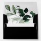 This emerald greenery black wedding invitation envelope is perfect for a boho wedding. The elegant yet rustic design features moody dark green watercolor leaves and eucalyptus with a modern bohemian woodland feel. Personalize the envelope flap with your return address. These envelopes can also be used for a bridal shower, rehearsal dinner, or any special event.