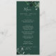 This emerald greenery green wedding dinner menu card is perfect for a boho wedding. The elegant yet rustic design features moody dark green watercolor leaves and eucalyptus with a modern bohemian woodland feel. This menu can be used for a wedding reception, rehearsal dinner, or any event.