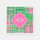 Emerald Hot Pink Preppy Patchwork Madras Monogram Napkin
