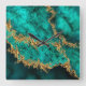Emerald Jade Gold Splatter Abstract Square Wall Clock