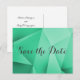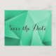Sharp and modern Jewel Tones Wedding Save the Date Postcard featuring an emerald green funky geometric triangle background. This chic and simple design is a unique choice for announcing a modern wedding. Easy to customize with your wedding details. Click "Customize It" to find more personalization options.
