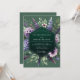Embrace a botanical romance with this elegant design. Sprays of delicate purple lavender and soft anemones bloom against a rich, emerald green backdrop. Lush green foliage weaves throughout the arrangement, creating a moody and enchanting atmosphere perfect for a sophisticated union.
