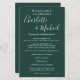 Elegant demerald green signature script wedding weekend program featuring signature style names. Personalize with your wedding weekend details set in chic white lettering. Designed by Thisisnotme©