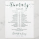 This stylish emerald green and white wedding itinerary schedule-timeline can be personalized with your wedding details in chic lettering. Designed by Thisisnotme©
