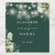 Elegant string lights greenery floral emerald green wedding design personalized with your names and special wedding date. Designed by Thisisnotme©