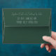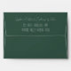 A minimalist, modern and elegant emerald green wedding envelope featuring elegant one-line drawn white Roses against a deep emerald green background. The inside of the envelope features your names and the same white roses imagery. An elegant and lively handwritten calligraphy font set states your names and return address on the back flap.