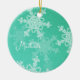 Emerald White Snowflakes Minimalist Christmas Name Ceramic Ornament