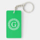 Emerald Wht Greek Key Rnd Frame Initial Monogram Keychain