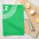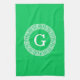 Emerald Wht Greek Key Rnd Frame Initial Monogram Kitchen Towel
