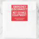 A sheet of six, 3" x 3" EMERGENCY DISCONNECT, NOT SERVICE EQUIPMENT sticker labels with Spanish subtitles for electricians to label electrical services. Desconexión de emergencia, no equipo de servicio